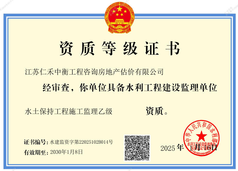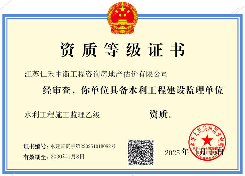 • 水利工程施工監理乙級證書