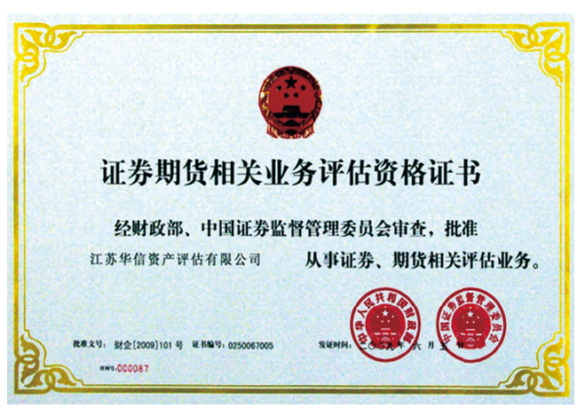 • 證券期貨相關業務評估資格證書